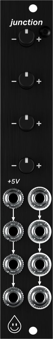 junction is a compact, 4 channel attenuverter, cascading mixer and multiple designed to fine tune the control voltages in your rack to the perfect range for their destinations. junction can be used as a source of fixed voltage, offset