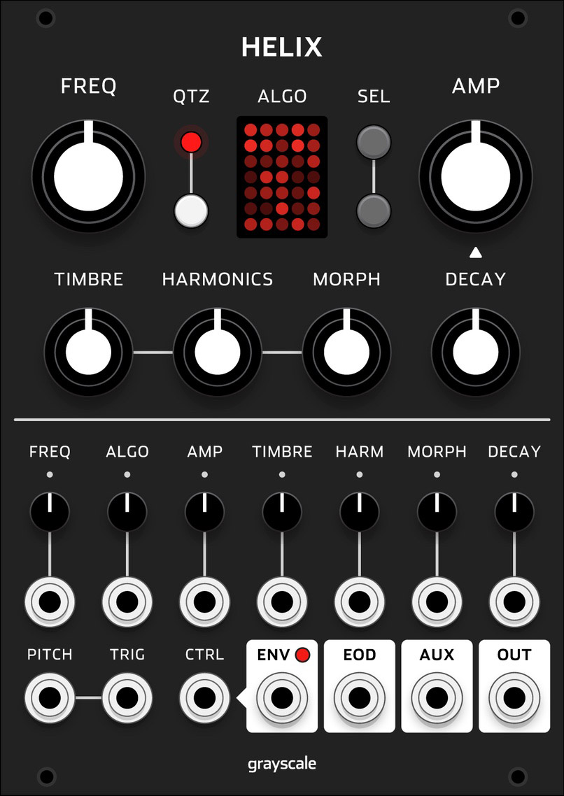 helix represents the evolution of mutable's plaits macro oscillator. with new features such as pitch quantization, parameter randomization, and an internal modulation bus, helix provides a self-contained synth voice for your eurorack modular system in an efficient 18hp package.