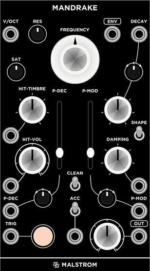 mandrake is not another 808 or 909 clone; its analog circuitry is entirely built from scratch to create an original sound. also nothing more than a great kick; ranges to get into detail, and useful kick drum sounds throughout its settings!